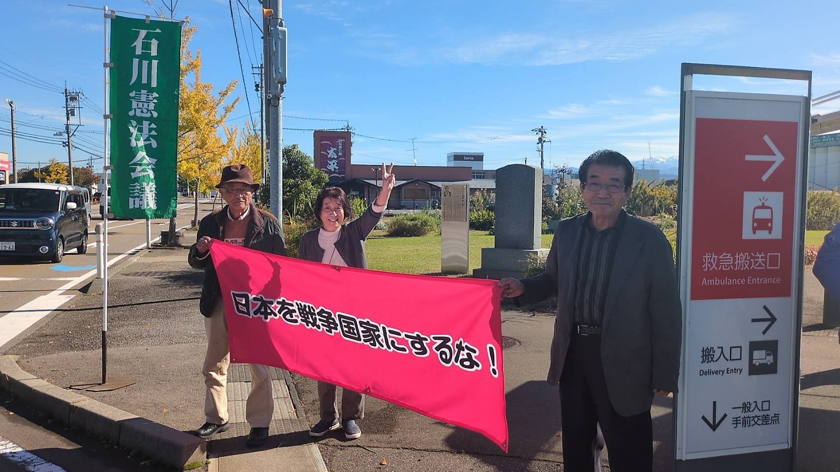 みなさま、こんにちは。 先日は石川憲法キャラバンIN加賀に同行しました。県内各地を巡りながら、憲法を守ることの大切さを訴えていくとのことです。 加賀市では、買い物客が集まる、アルプラザ、イオン加賀、山代アオキの3カ所で訴 ... 続きを読む →