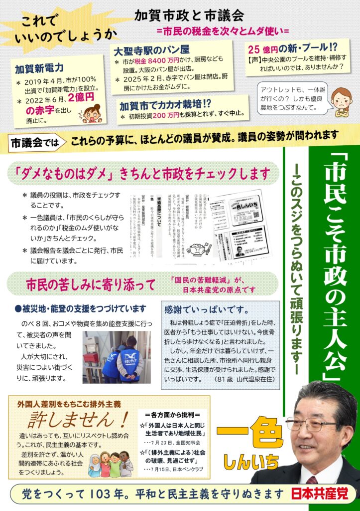 © 2021 - 2025 石川県加賀市議会議員・一色眞一(日本共産党)