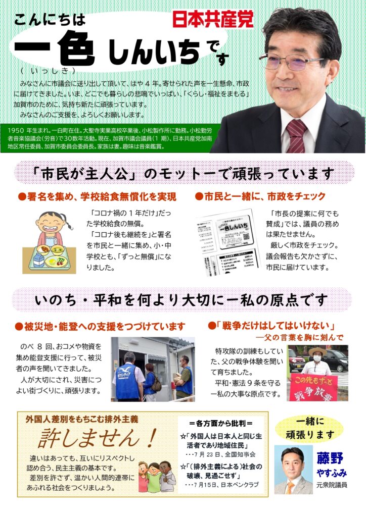 【9月28日告示・10月5日投票】一色しんいち候補・加賀市議会議員選挙特設ページ